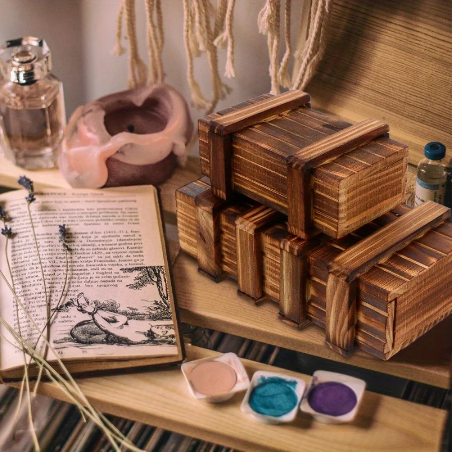 1pc/2pcs Vintage Wooden Secret Puzzle Box - 3D Brain Teaser with Hidden Compartment, Ideal for Gifts, Jewelry & Money Storage-A